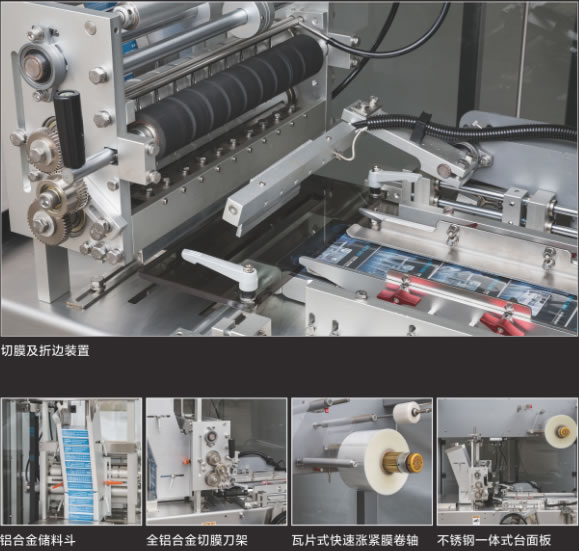 1.本機是一款全自動高速透明膜包裝設(shè)備,采用平推式包裝方式,所有裹包及熱封動作均凸輪傳動完成,具有速度快、運行穩(wěn)定等特點。