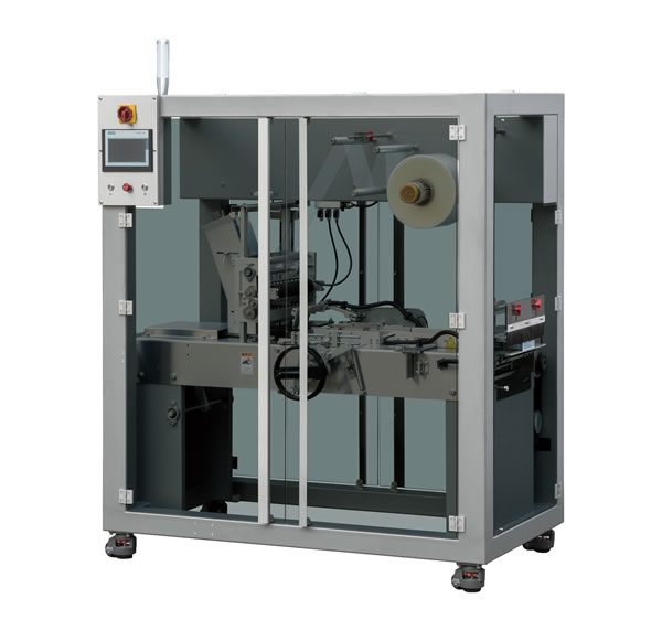 本機適用于各行業(yè)中的單件盒式物品的薄膜自動包裝(帶金拉線)。本機整體機架采用碳鋼噴塑、落地多開安全門結(jié)構(gòu),采用平推式推盒結(jié)構(gòu),更換模具簡單,調(diào)節(jié)距離多處采用手搖式調(diào)節(jié)尺寸,大大節(jié)省換模具時間,固定膜處采用氣漲軸輥固定,使換膜更簡單、快速。