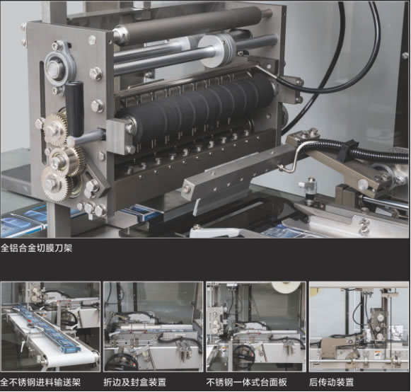 1.本機是一款全自動高速透明膜包裝設備,采用平推式包裝方式,所有裹包及熱封動作均凸輪傳動完成,具有速度快、運行穩(wěn)定等特點。